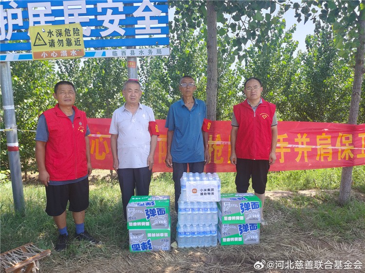 临西站(临西县爱心志愿者协会)在大刘庄镇,河西镇,河西镇初庄村、瓜厂村、教场村、西温村,出动30多名志愿者,发放由河北慈善联合基金会与小米公益基金会携手捐赠的8400瓶矿泉水、4200桶方便面,并慰问漳卫运河值班工作人员、志愿者、以及运河附近的困难群众共计120余人。