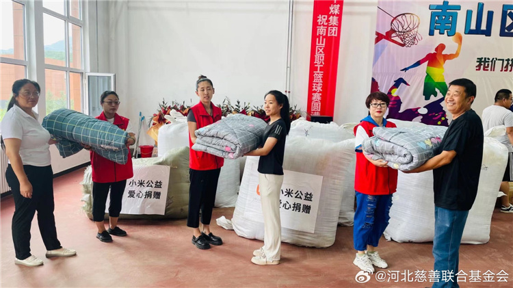 宣化站(张家口市宣化慈善义工联合会)6志愿者将1000条棉被送到涿鹿县河东镇物资接收点及灾民安置点。