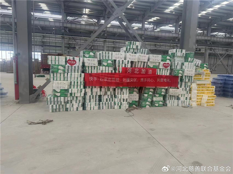 18时,快手·石家庄蕊姐捐赠物资的1700箱卫生巾、4000桶84消毒液、2000提卫生纸、1480桶食用油送达涞水。