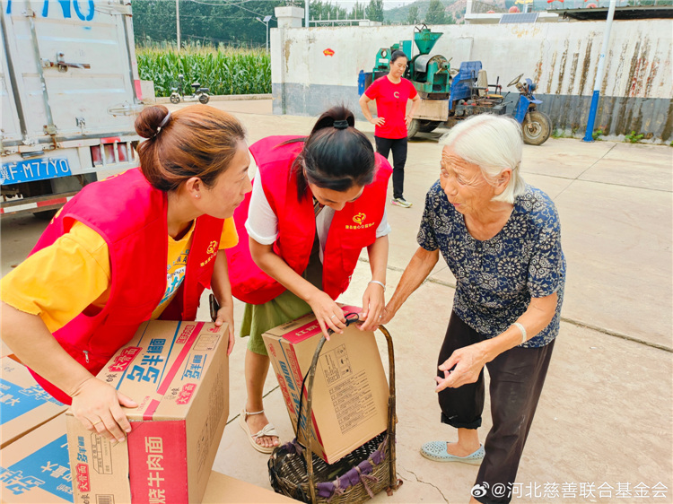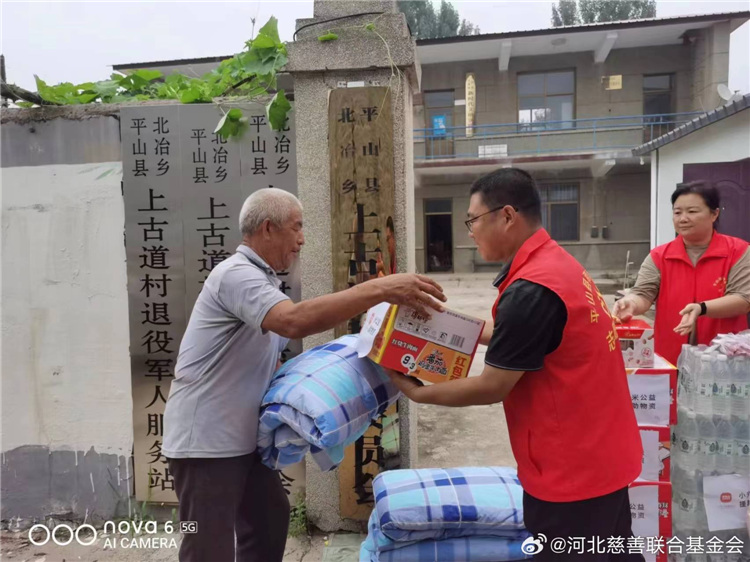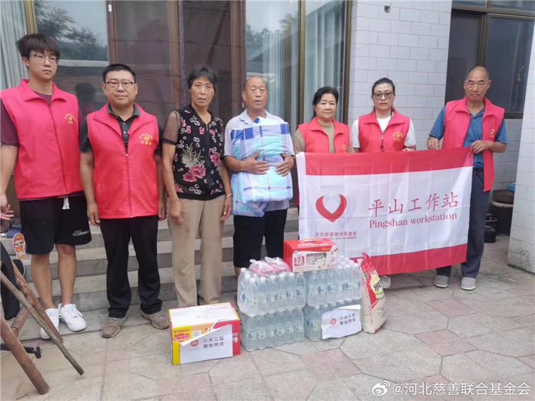 平山站(平山县和爱协会)联合平山县两个爱心商家和11名志愿者,将240桶方便面、1200瓶饮用水、20袋大米、120斤手撕面包、400根火腿肠、12箱牛奶、12条棉被送到平山县北冶乡赵家沟村和上古道村两个村庄,并慰问了在此次水灾中受害严重的12户家庭。