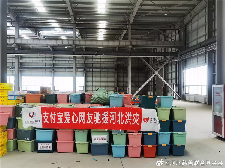 17时40分,200个应急生活箱完成分装,发往保定易县。