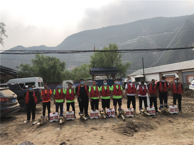 临城站(临城县志愿者协会)组织10名志愿者,为赵庄乡、郝庄镇送去10台发电机,为槐树庄村、梁家庄村、寺台村等二十个村,送去50台消毒弥雾机、350000片泡腾片。