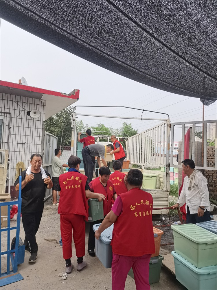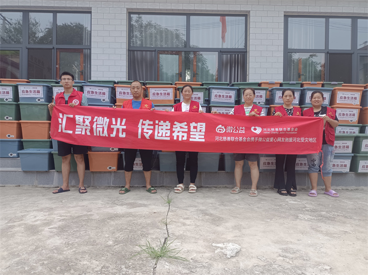 霸州站(霸州市野火志愿者协会)组织60名志愿者,在霸州镇20个受灾群众免费安置点,发放280个应急生活箱。