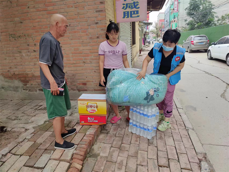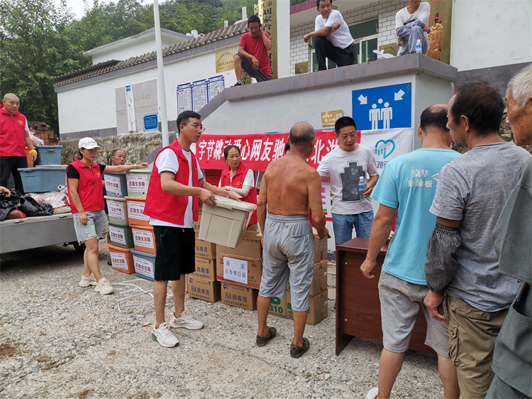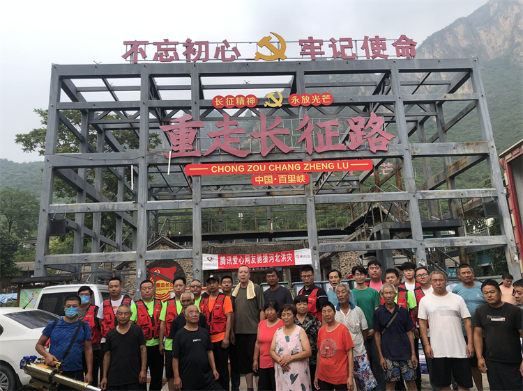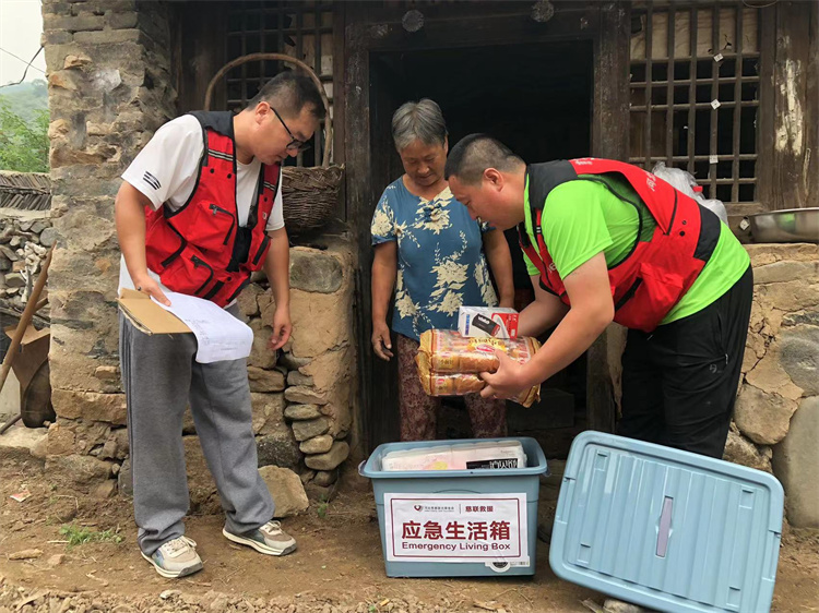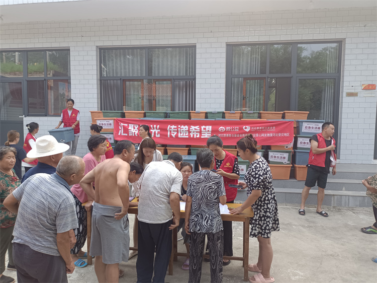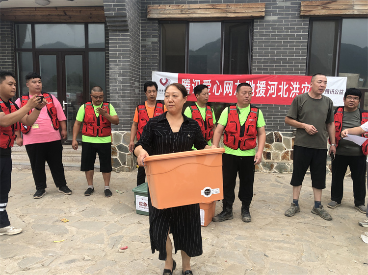 唐县站(唐县爱心公益协会)组织20名志愿者,在唐县通天河沿岸水峪口村,将200份应急生活箱发放到村民手中。