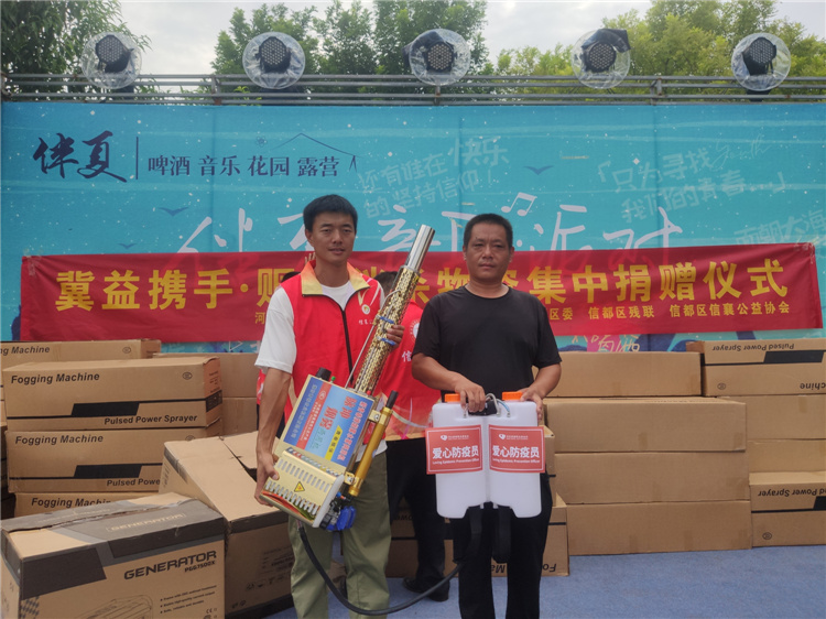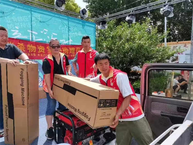 邢台站(邢台市信都区信襄公益协会)为信都区白岸乡许家村送去发电机2台、弥雾机4台、泡腾片28000片;为宋家庄镇明水村送去发电机1台、弥雾机1台、泡腾片7000片;为皇寺镇西羊卧村送去发电机2台、弥雾机5台、泡腾片35000片,为北小庄乡雀寨村送去发电机3台、弥雾机7台、泡腾片49000片,为北天井村送去发电机1台、弥雾机2台、泡腾片14000片;为太子井乡西牛峪村送去发电机1台,为西太子井村送去发电机1台、弥雾机1台、泡腾片7000片,为东太子井村送去弥雾机1台、泡腾片7000片,为东牛峪村送去弥雾机1台、泡腾片7000片,为峰门村送去弥雾机1台、泡腾片7000片;为宋家庄镇明水村送去发电机1台 、弥雾机1台、泡腾片7000片;为甄家庄村送去弥雾机1台、泡腾片7000片,为大北沟村送去弥雾机1台、泡腾片7000片,为四里营村送去弥雾机1台、泡腾片7000片;为巨鹿县苏家营乡东旧城四村送去弥雾机2台、泡腾片14000片;为南和区三思镇南韩村送去发电机1台、迷雾机2台,泡腾片14000片;为任泽区骆庄乡东望村送去发电机2台、弥雾机4台、消毒泡腾片28000片,为骆庄乡达二庄村送去弥雾机2台、泡腾片14000片。