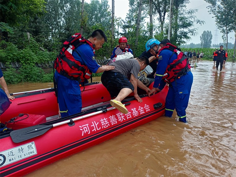 河北慈联应急救援队紧急调配1台大型抽水泵和2搜橡皮艇(含船外机)前往保定进行救援,第一救援梯队已在保定涞水、阜平等地开展联合救援5天。