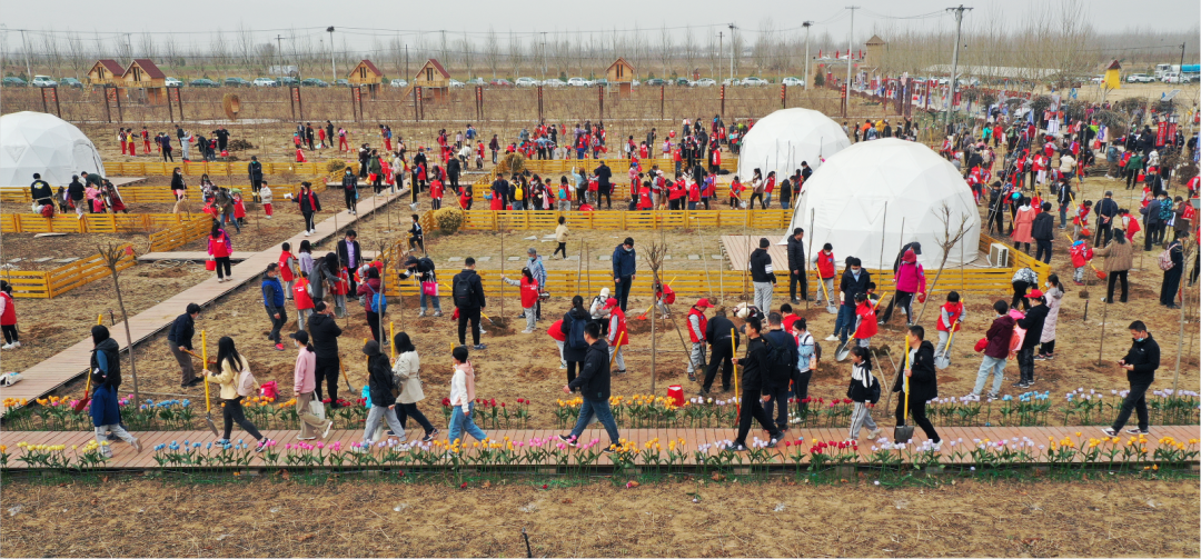 3月10日,来自42家社区、学校、企事业单位的4000余名志愿者集结在石家庄正定塔元庄同福福宝乐园,共同参加“冀益携手让爱萌芽——2024植爱行动”万人公益植树活动,为早春的河北增添一抹绿色。