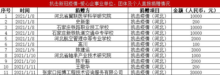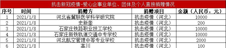 “抗击疫情(河北)”捐赠情况公示(1.31)