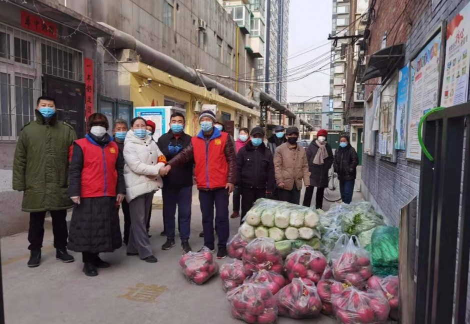 1月14日上午9点,石家庄市裕华区建通街热闹非凡,紧张有序。有卸车的,有搬运的,有分装的,来自石家庄市钟强小区、石纺小区、建明小区等20个小区的爱心防疫员在这里领到了新鲜的蔬菜,而后便分发到了社区居民家中。
