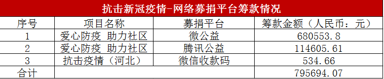 “抗击疫情(河北)”捐赠情况公示(1.20)