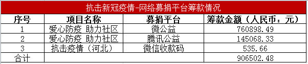 截止1月16日上午10时,河北慈善联合基金会共计接受“抗击疫情”捐赠物资及善款2782430.84元,累计支出物资及善款2217874元。